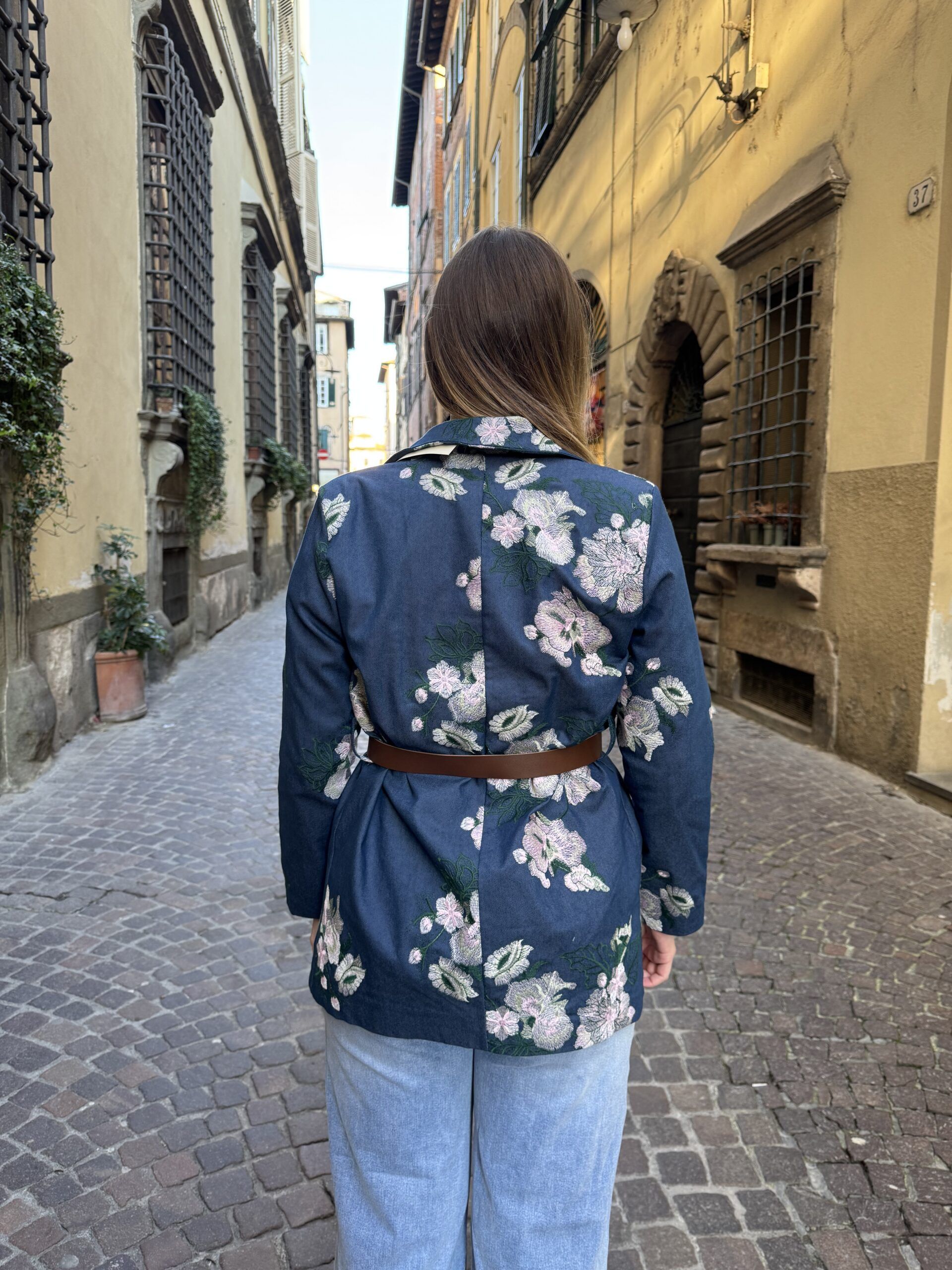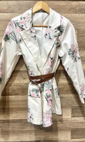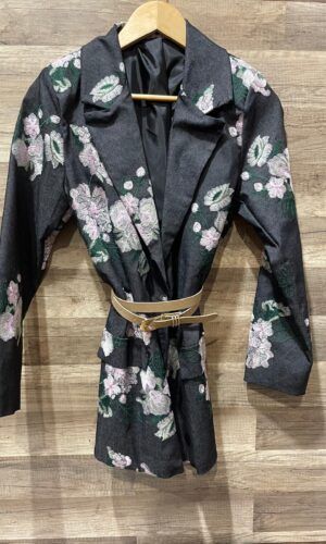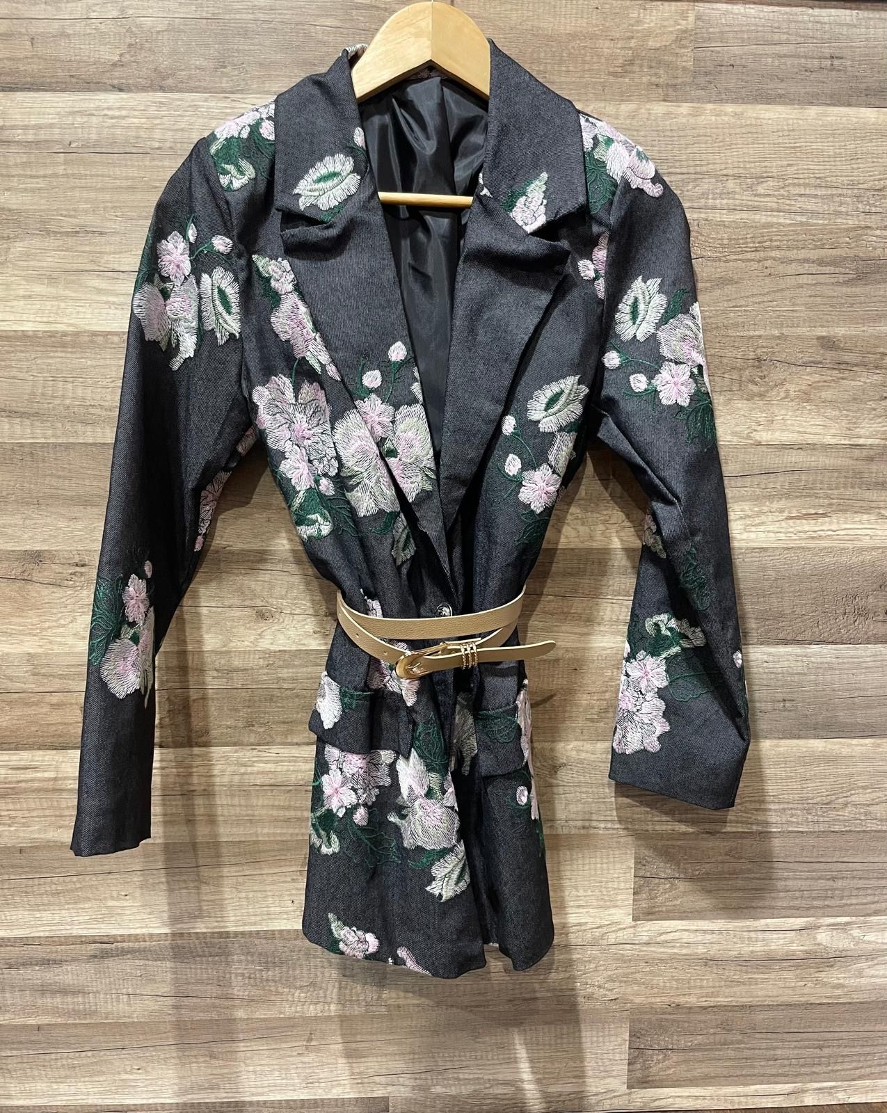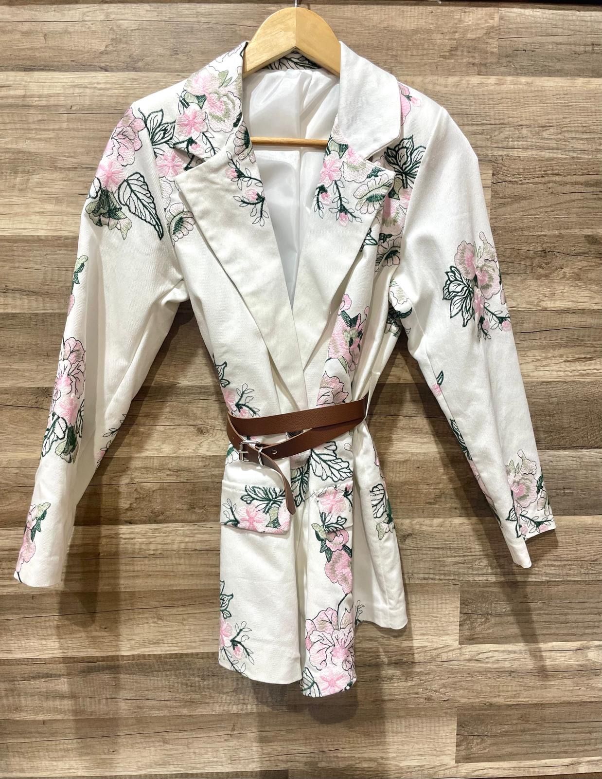 Blazer foderato con spalline, cintura e tasche finte