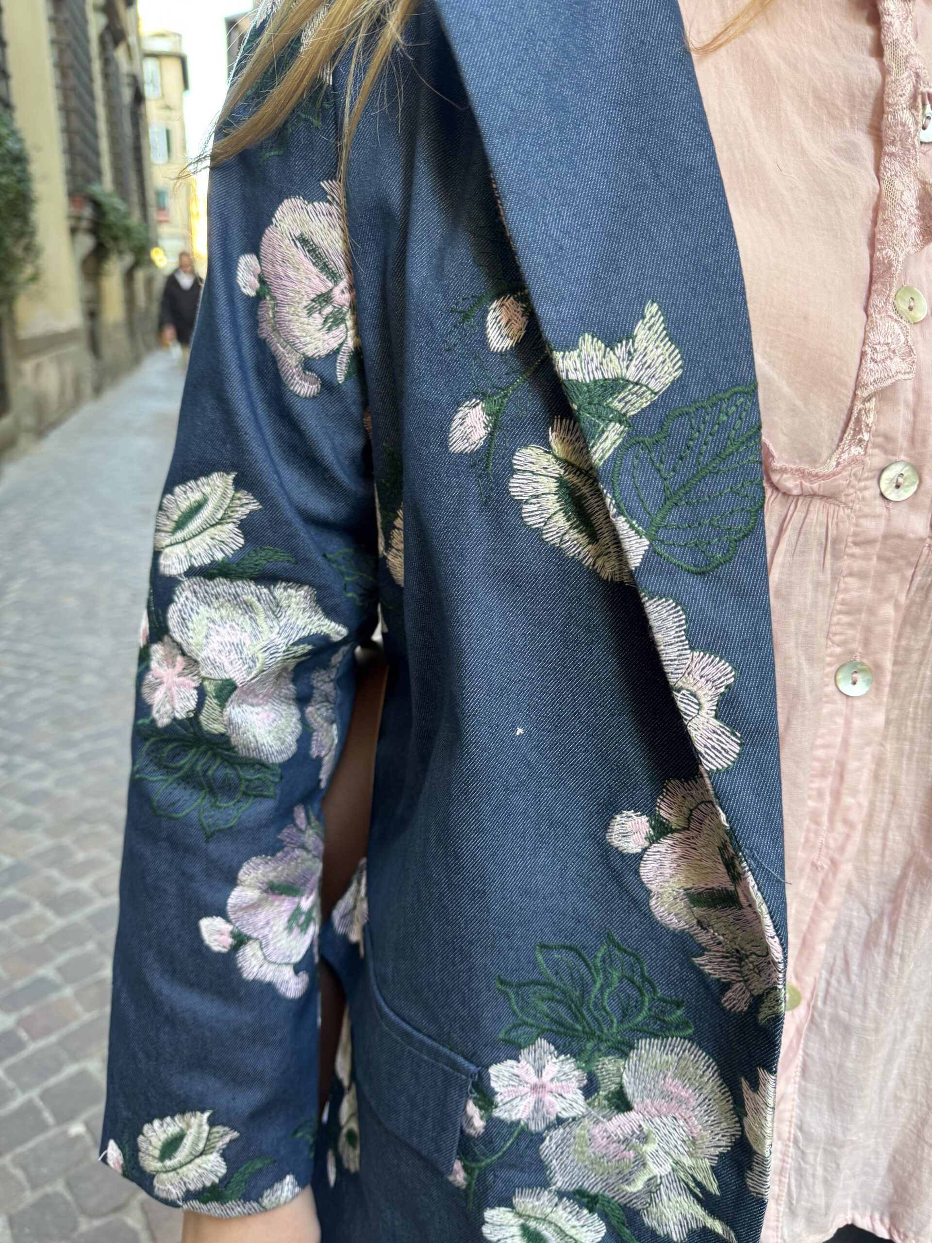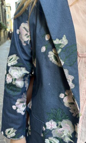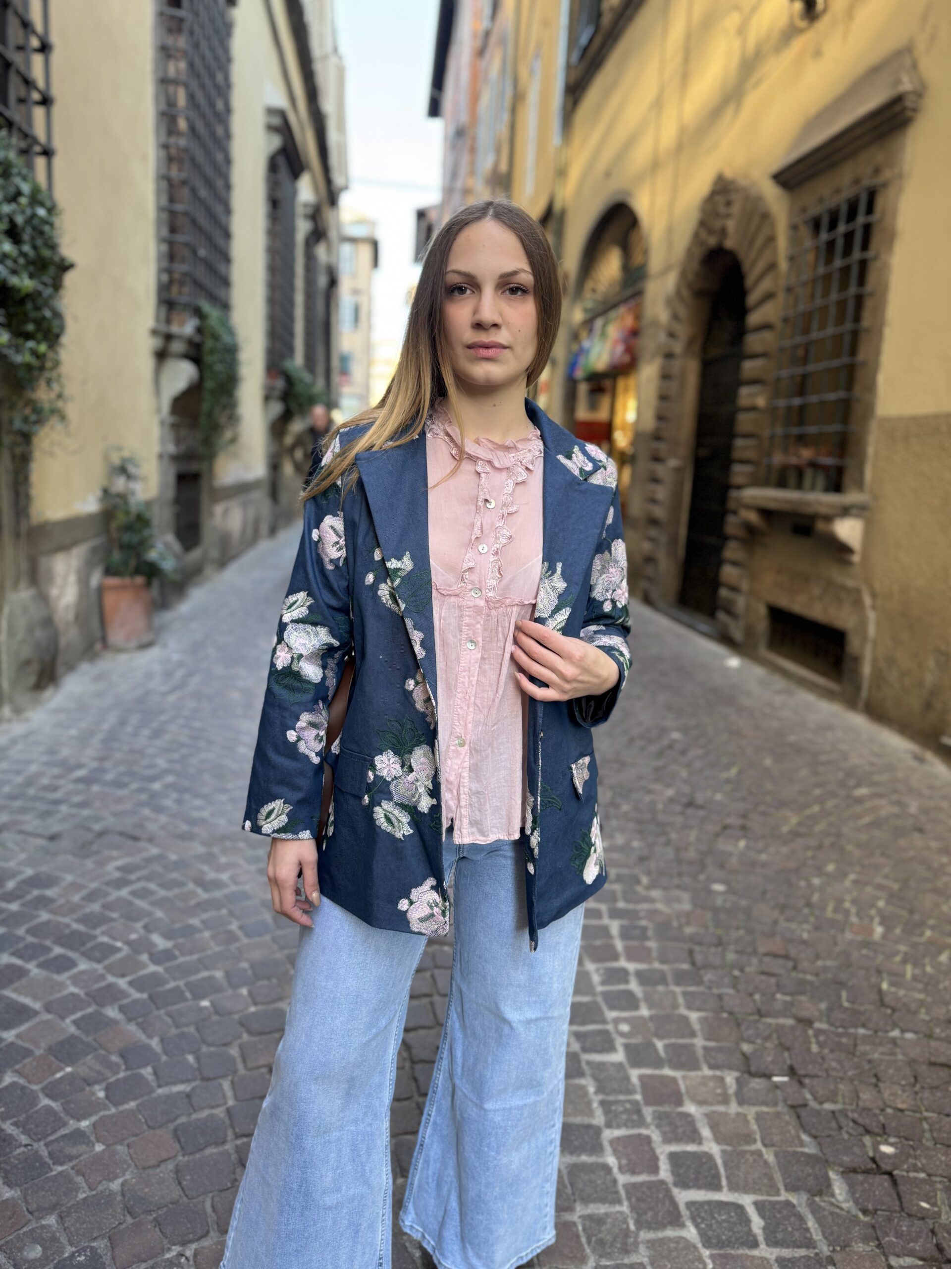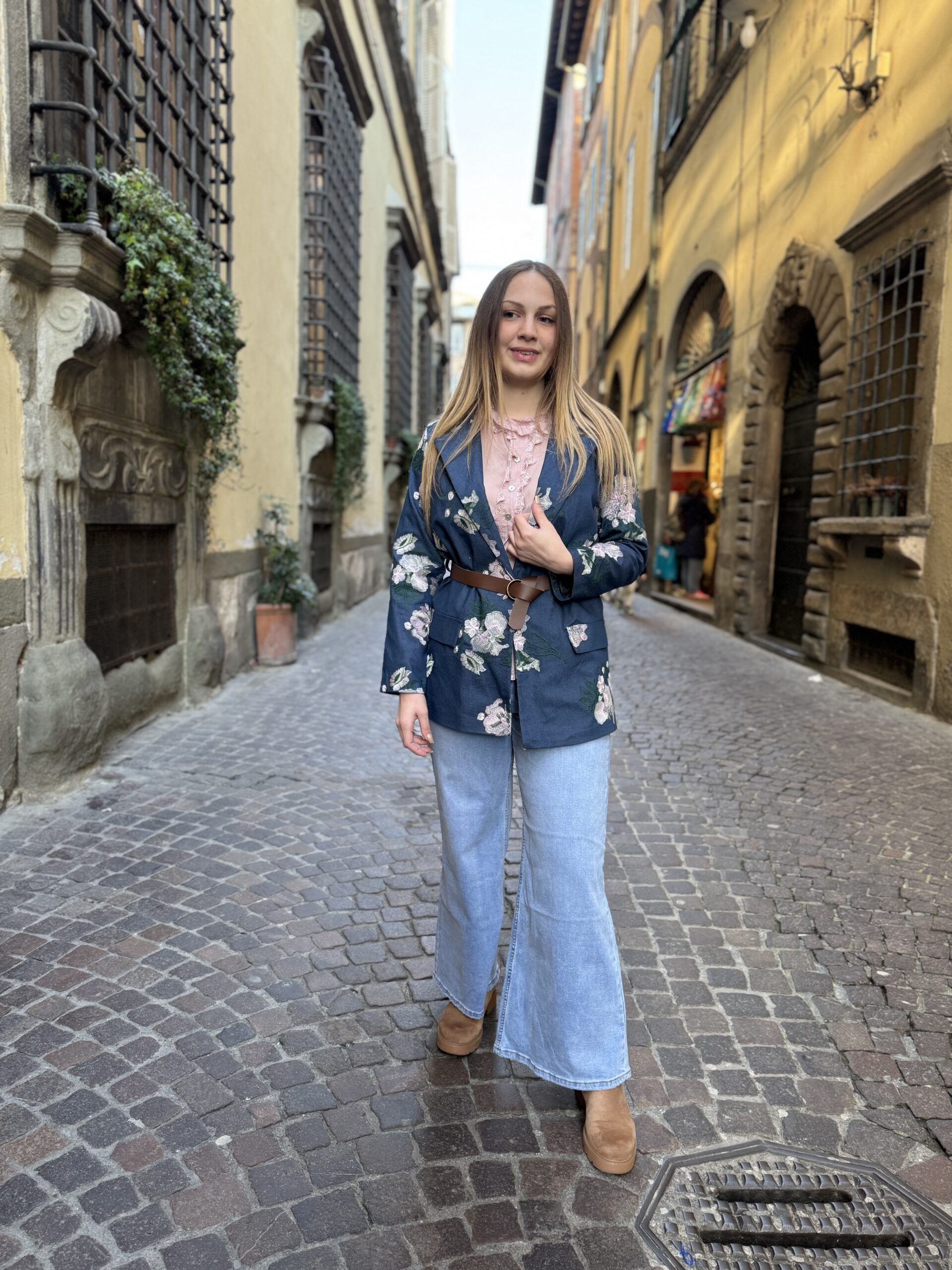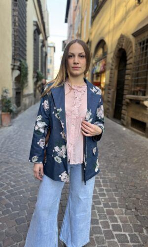 Blazer foderato con spalline, cintura e tasche finte